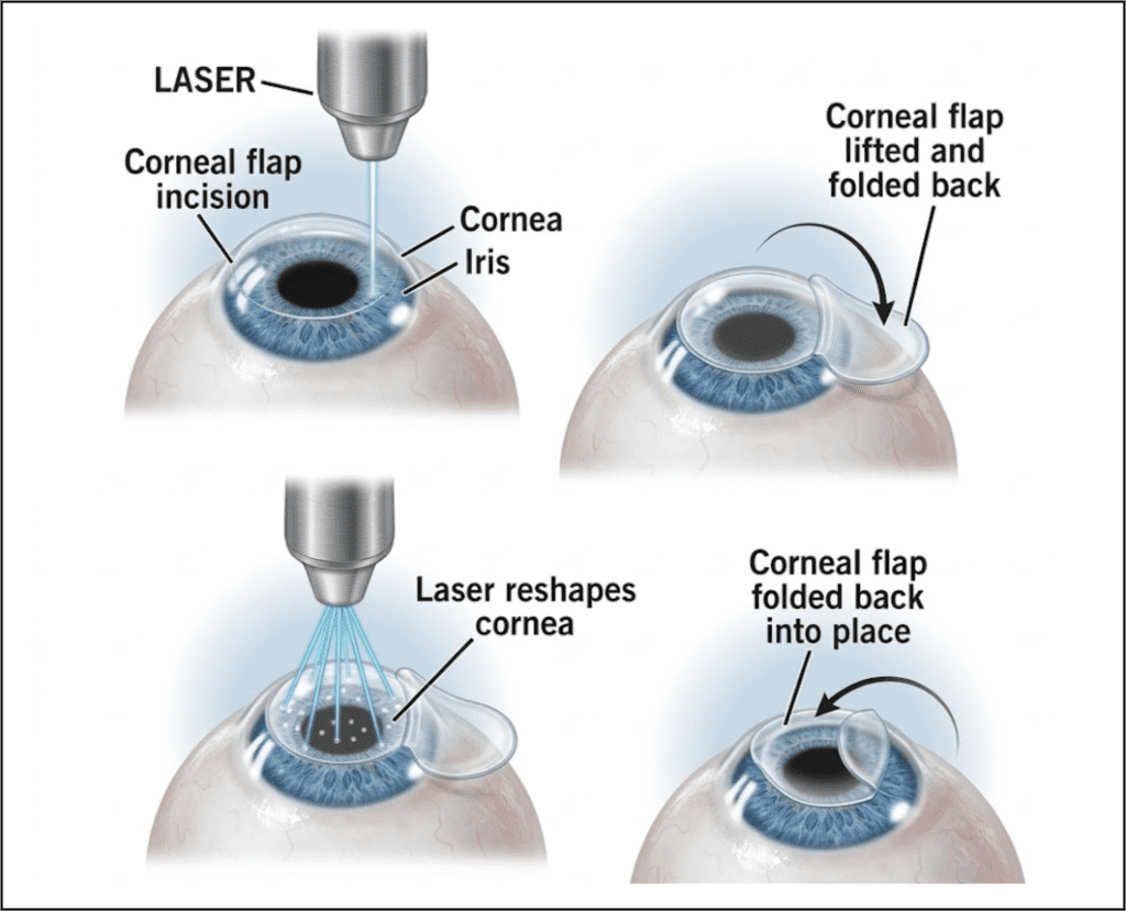 Patients do not need to remember those optical details, but it helps to understand the basic idea: LASIK does not place a lens in the eye or work deep inside the eye. It reshapes the cornea, which is the front window of the eye.