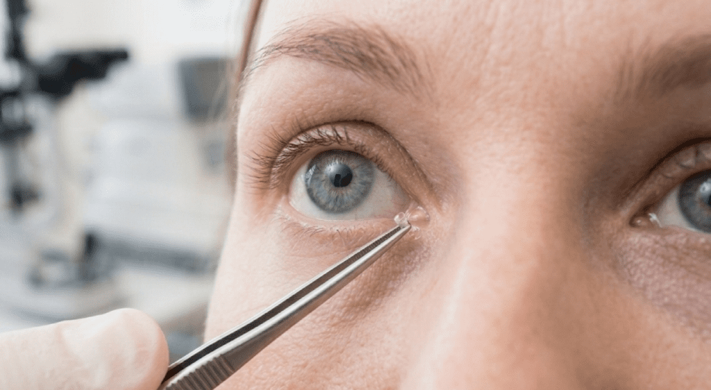 When the eyelid is gently positioned and the plug is placed, patients typically notice a light sensation at the inner corner of the eye. Because the punctum sits on the eyelid rather than on the surface of your eyes itself, it does not feel like having something touch the eye directly. It is closer to a light press at the corner of the eyelid — momentary, and then gone.